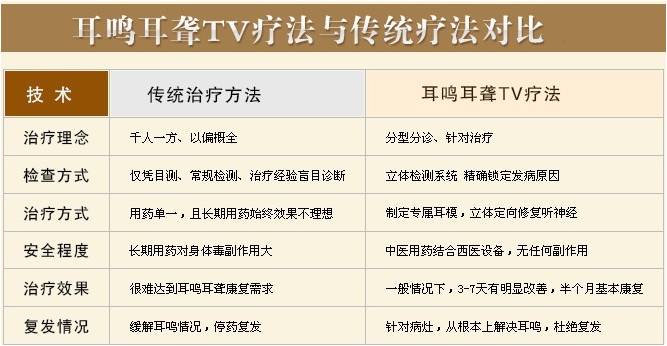 中西治疗耳鸣耳聋中西医优秀研究成果,具有活血化瘀、消肿散结、祛腐生肌、促生鼓膜,扩张软化血管、改善心脑供血,促进耳脉耳络畅通、芳香通窍、促进坏死神经细胞再生、消除耳鸣、恢复听力等功效,针对性治疗老年性耳鸣、突发性耳鸣、神经性耳鸣、噪音性耳鸣、混合性耳鸣、传导性耳鸣。 点击详细了解中西治疗耳鸣耳聋