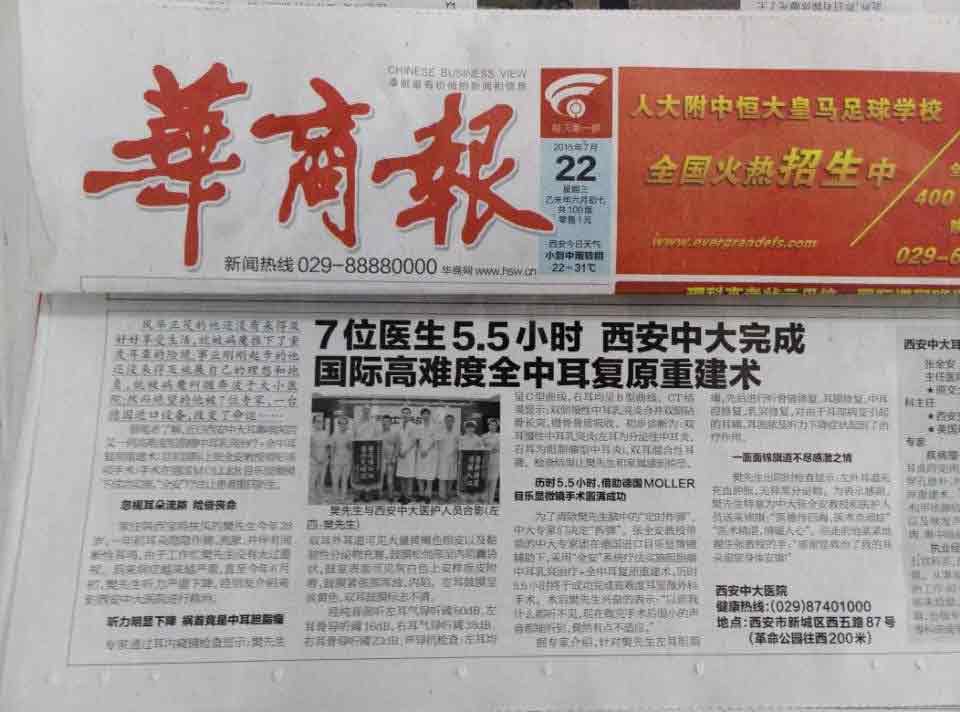 【华商报】7位医生5.5小时,西安中大完成高难度全中耳复原重建术