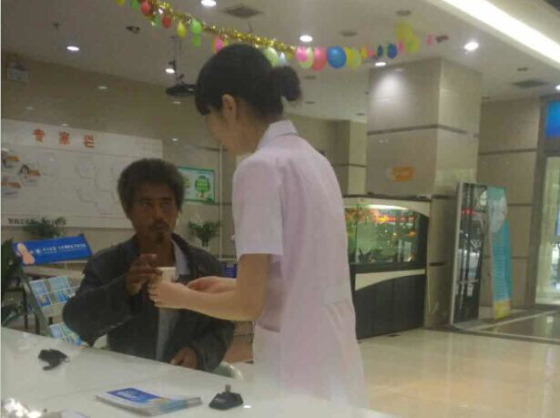 8月19日下午15时许,西安中大耳鼻喉医院医护人员见一位神情焦虑的老人在医院附近徘徊,走进了解情况后便毫不犹豫的将他搀扶到了中大医院。当得知眼前这位老人正面临遗失孩子、身份证、钱包的不幸时,中大导医热心的将自己的手机借给了老人,让他能够打个电话回家,为他打来热水,洗去满脸污垢,并主动端茶递给老人,在邻近的超市买来面包供他充饥。