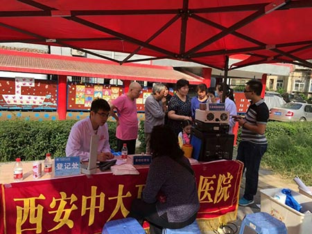 每日重复的义诊行程与步骤,重复的疾病介绍,健康普及,重复的应答与叮嘱,不同的,是每日行走在不同的社区,面对着不同的人群,传播着更广的知识,服务着更多的对象。西安中大义诊人员说到:“身为医者,穿上一身白大褂,加入到义诊队伍中来,就代表肩负着责任,要实现当初服务基层群众的承诺,要对得起装束与称谓。”