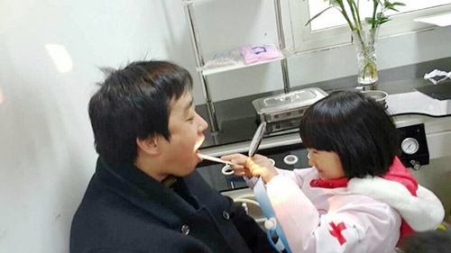 讲课结束后,所有儿童每5人分成一组,由西安中大耳鼻喉医院医护人员带领,分别进入各科室进行“小小医生”职业体验,各个诊室医助一对一教导小医生使用额镜、压舌板帮父母检查,让小朋友们过足医生瘾。