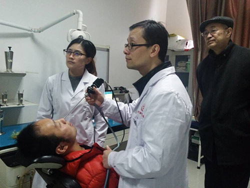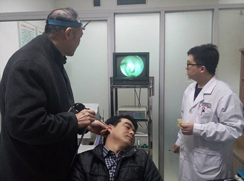 张全安教授为患者做耳内窥镜检查
