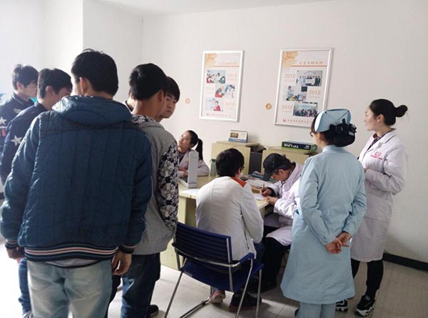 学生们正在排队抽血采样